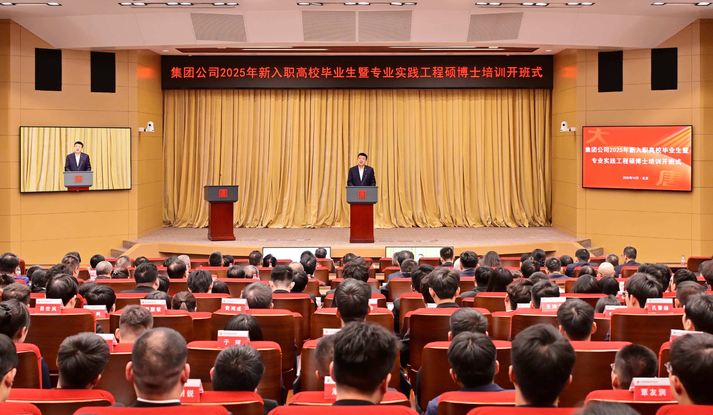 开班式以“现场+视频”形式召开。集团公司有关部门及党校主要负责人、在京单位主要负责人、相关二级单位人力资源部负责人、系统各单位2025年新入职高校毕业生代表和2025年新入企专业实践工程硕博士在主会场参加开班式。京外单位主要负责人、各单位分管领导、相关部门人员,2025年新入职高校毕业生在分会场参加开班式。