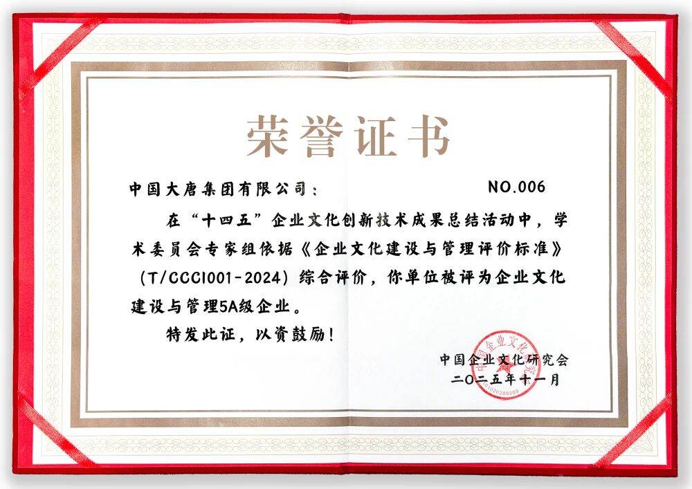 中国大唐获评企业文化建设与管理5A级企业,大唐国际发电股份有限公司和中国大唐集团海外投资有限公司获评4A级企业。