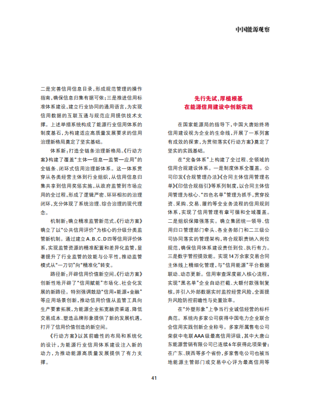 [中国能源观察]贯彻落实《行动方案》 担当能源信用体系建设排头兵