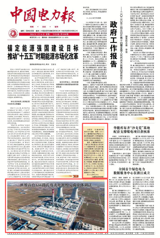 [中国电力报]2026-3-16-1 世界首台630摄氏度火电机组完成单体调试