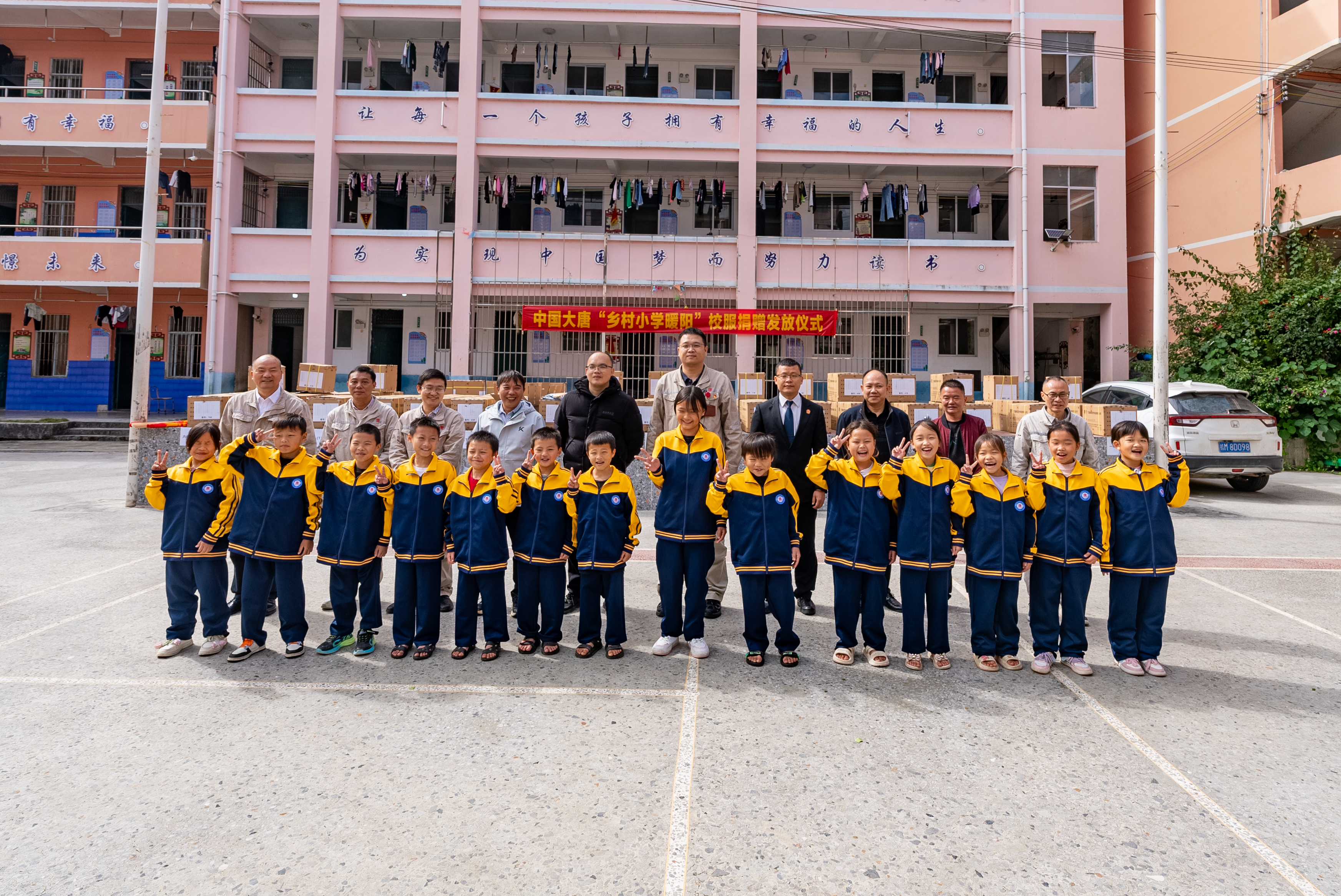 暖阳照童心,板兰村小学师生们喜提大唐爱心校服啦